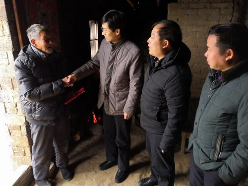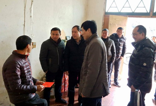 在乡村两级干部的陪同下,查副校长来到新建档立卡贫困户等五类人员家中走访慰问,并送上元旦新春佳节祝福。每到一户,查副校长都仔细询问贫困户有关情况,问贫困户是否认识第一书记和帮扶干部,每个月上门几次,有没有加入合作社,致贫的原因和帮扶措施。看到贫困户对帮扶干部工作认可,他十分欣慰。针对新纳入贫困户均是集中供养五保户转入,他要求驻村工作队、乡村两级一定要做好兜底保障,确保“两不愁、三保障”落实到位。