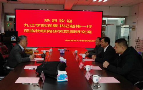 朱洪波教授对赵伟书记到访表示热烈的欢迎。朱教授介绍了物联网研究院发展建设相关情况。赵书记对朱教授的热情接待表示了感谢,并简要介绍了学校当前发展情况。赵书记说,九江学院改革发展已经到了关键机遇期,加强学科建设,突破硕士学位授予权是当前学校工作的重中之重。这次来南京邮电大学,就是要请国内一流高端学术团队为学校的学科建设和改革发展进行把脉指导。随后双方就学科建设、人才培养等进行了深入交流,朱洪波教授对我校加强学科建设提出了许多有建设性的意见和建议。双方在做实智慧鄱阳湖研究院、共同办好鄱阳湖论坛,与中国通信学会、华东交通大学共同举办2019年年会等方面达成了初步合作意向。