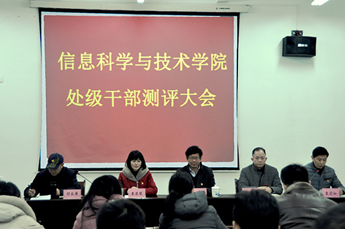 1月7日上午,信息科学与技术学院在文友楼424召开了2018年度处级干部述职测评大会。校党委委员、副校长王万山,党校常务副校长、党委组织人事部副部长李苏琴,组织人事部师资科科长周玉俊出席会议。会议由李苏琴副部长主持,信息科学与技术学院领导班子和全体教职工参加了述职测评会议。
