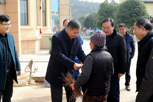 老人家真挚的情感令赵伟书记十分感动,学校扶贫点的困难群众和扶贫干部一直是他心中的牵挂。1月13日上午,学校师生刚放寒假,校党委书记赵伟在武宁县委书记杜少华,我校党委委员、党院办主任刘遵海的陪同下专程赶到扶贫点慰问贫困户和学校一线扶贫干部。学校驻村工作队全体成员,乡村两级干部参加慰问活动。