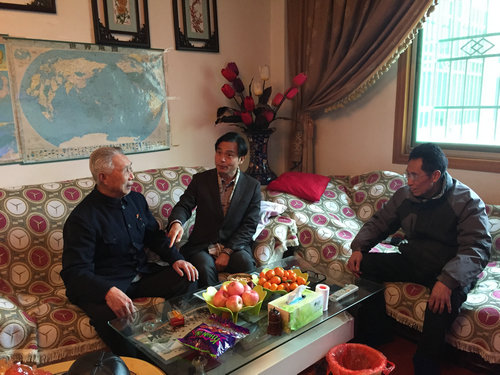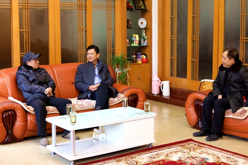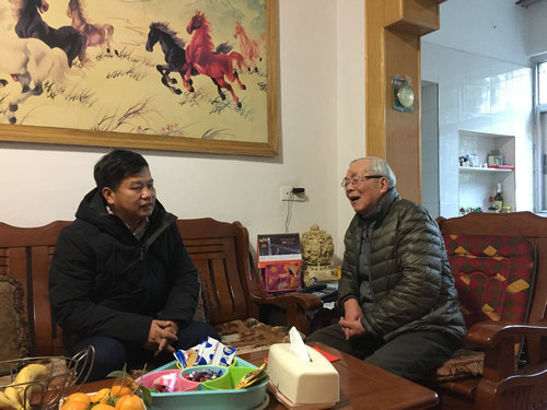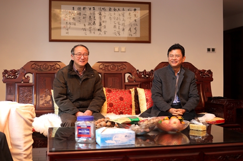 每到一处,校领导都与老同志亲切交谈,询问老同志身体和生活状况,祝愿他们在新的一年里身体健康,家庭幸福。校领导向老同志简要介绍了过去一年学校首届党代会召开、教育部审核评估顺利通过、新一轮申硕及校区教育资源整合等方面的情况。