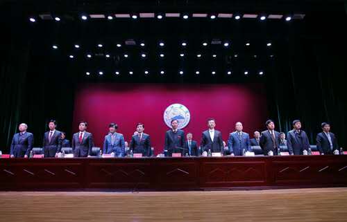 大会在庄严的国歌声中开幕。
