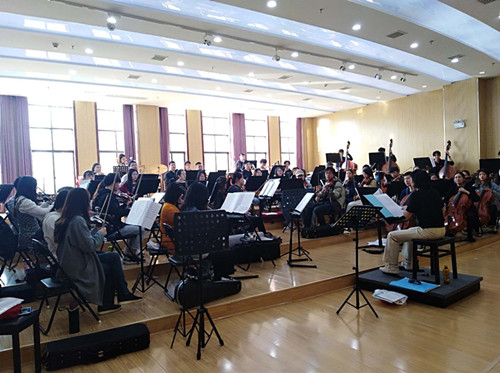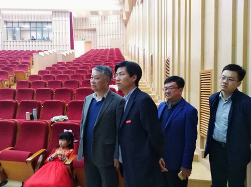 朱洪波一行先后参观了艺术学院MIDI音乐制作室、琴房、民乐合奏室、录音棚和音乐厅,并在舞蹈房观看了王常琳老师的舞蹈教学课,在排练厅观看了九江交响乐团的排练。