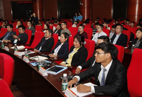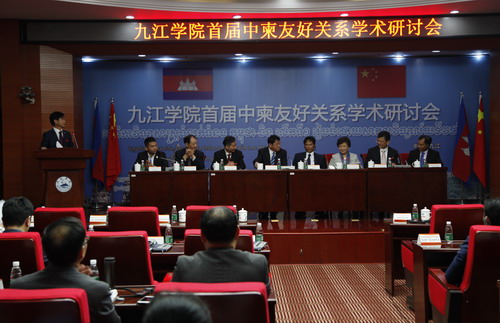 九江市人民政府副市长张新龙在致辞中向各位专家学者介绍了九江的人文历史,他指出,中国和柬埔寨是友好邦邻,两千年的交往源远流长。时至今日,两国在政治、经济、军事及文化教育等方面关系更为密切。在此大背景下,九江学院对口援教柬埔寨的华文教育,与柬埔寨皇家科学院合作承办孔子学院。这也促进了九江与柬埔寨教育文化科技等领域的交流与合作,带动了九江对柬埔寨的经贸往来。此次研讨会必将为促进柬埔寨孔子学院发展、打造九江学院柬埔寨研究中心品牌、加强中柬两国人文交流发挥积极作用。