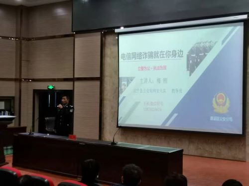 为提高大学生安全防范意识,有效遏制校园电信网络诈骗案件的发生,11月23日,在香远楼三楼报告厅,学校保卫处邀请了濂溪区公安分局反诈中心网安大队教导员梅刚警官为外国语学院和法学院近500名2021级新生作了题为“电信网络诈骗就在你身边”的反电信网络诈骗专题知识讲座。
