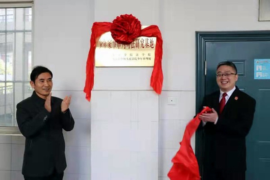 在热烈的掌声中,魏立平、徐先晓在我校香远楼一楼模拟法庭为“少年家事审判司法研究基地”揭牌;随后,魏立平、黄武在九江市中院少年审判庭为“少年家事审判司法实践基地”揭牌。