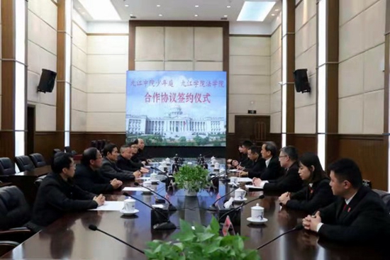通过签署合作协议,双方在九江中院少年家事审判中心共建少年家事审判司法实践基地,在法学院共建少年家事审判司法研究基地。双方将依托两个基地,加强双向互动交流,促进司法实践优势和学术资源优势互补,以预防未成年人犯罪、保护未成年人合法权益、修复婚姻家庭关系、维护婚姻家庭稳定、促进社会安定和谐为宗旨,推动少年家事审判实务水平和理论水平的发展。