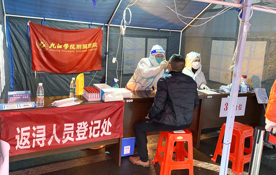 自3月18日起,九江学院附属医院援鄂老兵徐宇霞、徐文英、吴海鑫、方苗苗、陈美茜等20人组成的核酸采样队一直驻守长江一桥开展核酸筛查等疫情防控工作。信息登记、测量体温、核酸采集、站岗值守……她们每天24小时尽职尽责地坚守着江西“北大门”,为疫情防控筑起一座“外防输入”的坚固壁垒。