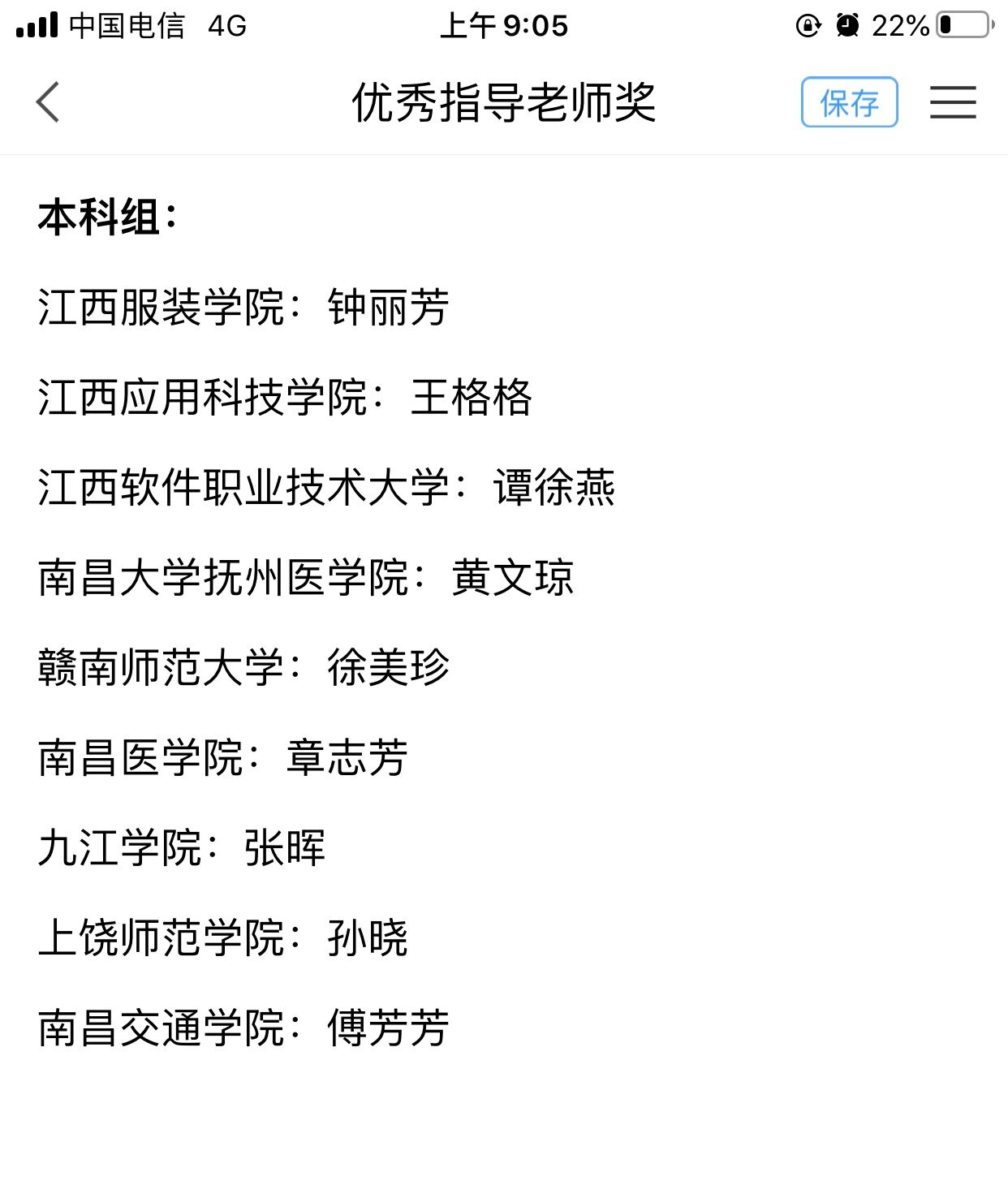 同时,主办方根据各参赛单位的所有有效参赛者的阅读积分的总和分数,评选出优秀组织奖,由于在活动中表现优秀,九江学院获得全省本科组优秀组织奖,学校图书馆张晖老师荣获“优秀指导老师奖”。