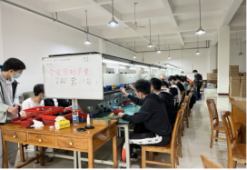 在人才培养方面,该学院秉承“竞知向学 厚德笃行”的九江学院校训精神,注重弘扬劳模精神和工匠精神,通过生产过程中辛勤劳动、诚实劳动,对产品尽善尽美的追求培养学生尚巧求精、执着耐心、专注品质的劳动态度。外语听力耳机生产活动是电子信息工程学院开展劳动教育的重要实践项目之一。该项目参照实际工厂的生产车间标准,建有专门的生产基地,配有现代化的电子工艺焊接生产流水线,占地面积480平方米,备有55个工位。同时借鉴了企业运营管理模式,从组织生产、产品销售、到售后服务均由学生自主完成。该生产流水线年产耳机8000余套,为近十余届九江学院学生提供了外语听力耳机及售后技术保障,超高的产品性价比获得了师生的一致好评。