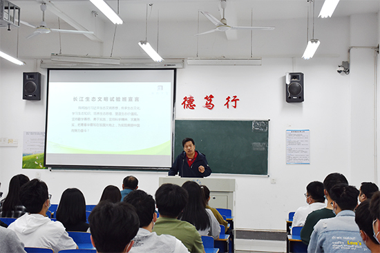 资源环境学院负责人以生态文明微课堂形式,阐明了开展生态文明教育的重大意义,希望同学们能够学会学习,处理好专业学习和特色教育的关系;能够学会融合创新,坚持把大学学习与社会实际需求相结合;能够学会坚持,要努力把试验班建成学风建设的引领班、示范班。