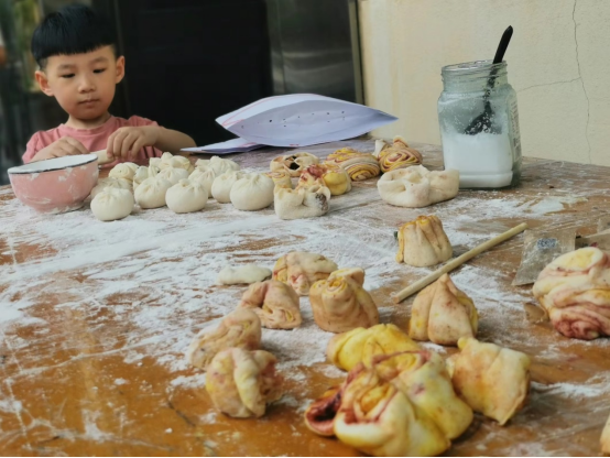 整个活动为期半天,“大手牵着小手”制作出了各式各样的面点,活动最后,面点蒸好了,大家品尝到了自己的劳动成果,小朋友们的脸上洋溢着灿烂的笑容。
