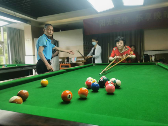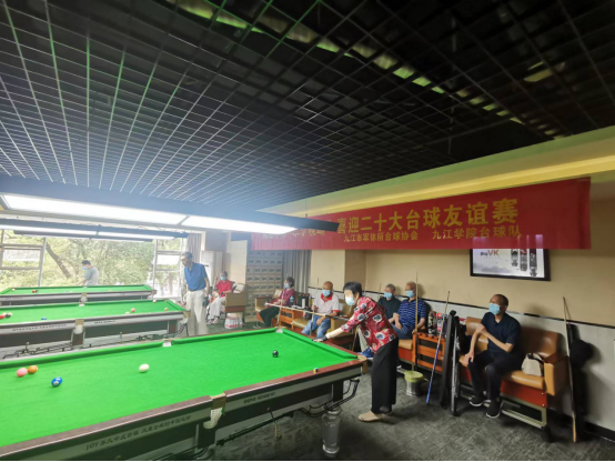 为了丰富退休职工业余生活,在6月7日上午,我校老体协与九江市军休所联合举办“喜迎二十大,奋进新征程”台球友谊赛活动。我校老体协主席王坚强带领万新文、罗翠兰、沈萍、郝纪华、赵美琴、杨长兴、黄秀泉等其余七位选手参加比赛。