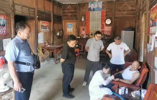 当天下午,临床医学院院领导一行前往帮扶点繁荣村脱贫户和监测户家中走访慰问,暑期“三下乡”社会实践服务队成员陪同前往,并积极针对帮扶家庭开展送医入户行动。根据所需进行了血压血糖测量等常规检查,对帮扶对象作了基本健康评估,提供了健康饮食、适当锻炼、合理用药等健康宣教,在提供医疗帮助的同时,极力强化他们的健康意识,鼓励他们保持乐观向上的生活态度。