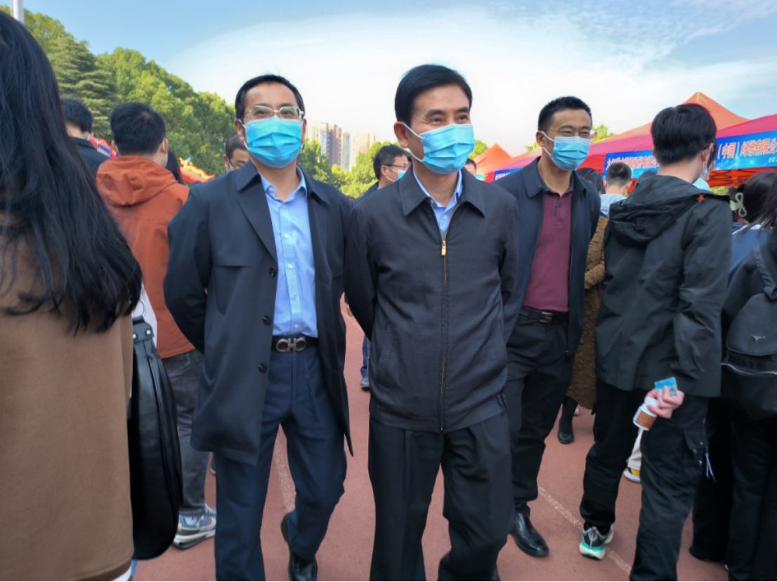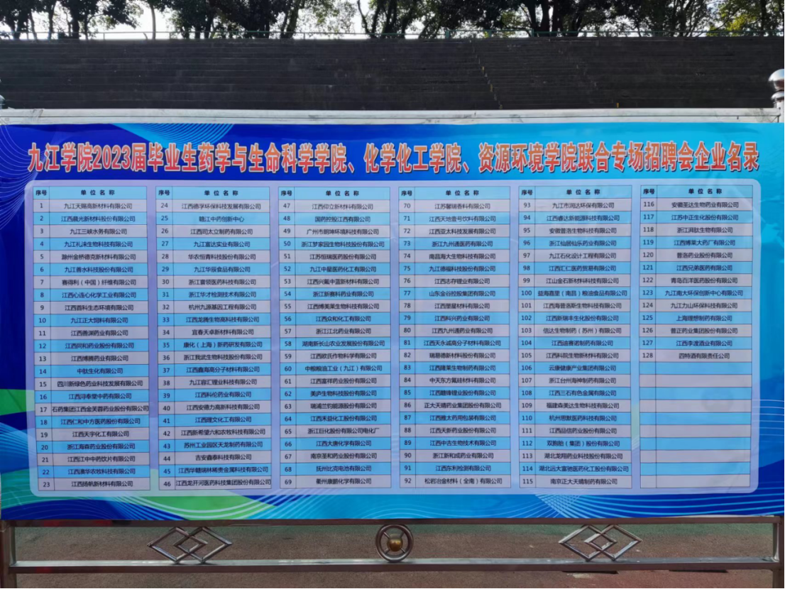 为进一步促进2023届毕业生就业工作,搭建各类企业与毕业生之间对接的平台,11月5日,“九江学院2023届毕业生药学与生命科学学院、化学化工学院、资源环境学院联合专场招聘会”在我校丹枫园校区南区运动场举行。校党委副书记魏立平,副校长王万山、陈春生在招生就业处、药生学院和化工学院、资环学院党政负责人的陪同下到招聘会现场指导。
