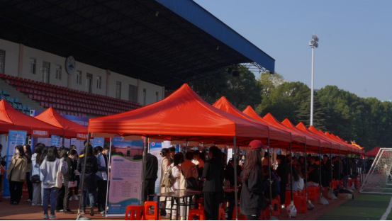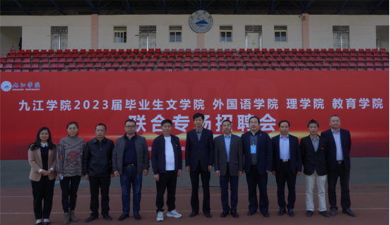 为贯彻落实党中央、国务院关于稳就业保就业决策部署,积极搭建用人单位和毕业生就业双向选择平台,全力促进我校毕业生更加充分更高质量就业,11月6日上午,由九江学院主办,招生与就业处、文学院、外国语学院、理学院、教育学院承办的2023届毕业生联合专场招聘会在我校主校区南区田径场举行。副校长查振华、纪委书记李广欣到现场指导,招生与就业处负责人,文学院、外国语学院、理学院、教育学院党政负责人陪同。