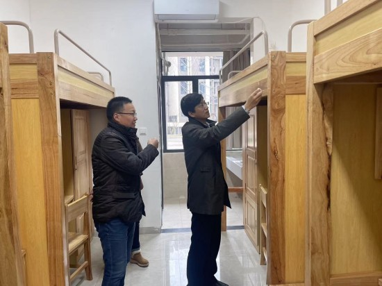 在巡查调研中,查振华听取了紫薇园校区的芙蓉小镇规划情况的介绍,并查看了学生宿舍住宿条件以及热水、洗衣机、空调等附属设施的配备安装及服务人员到位情况。