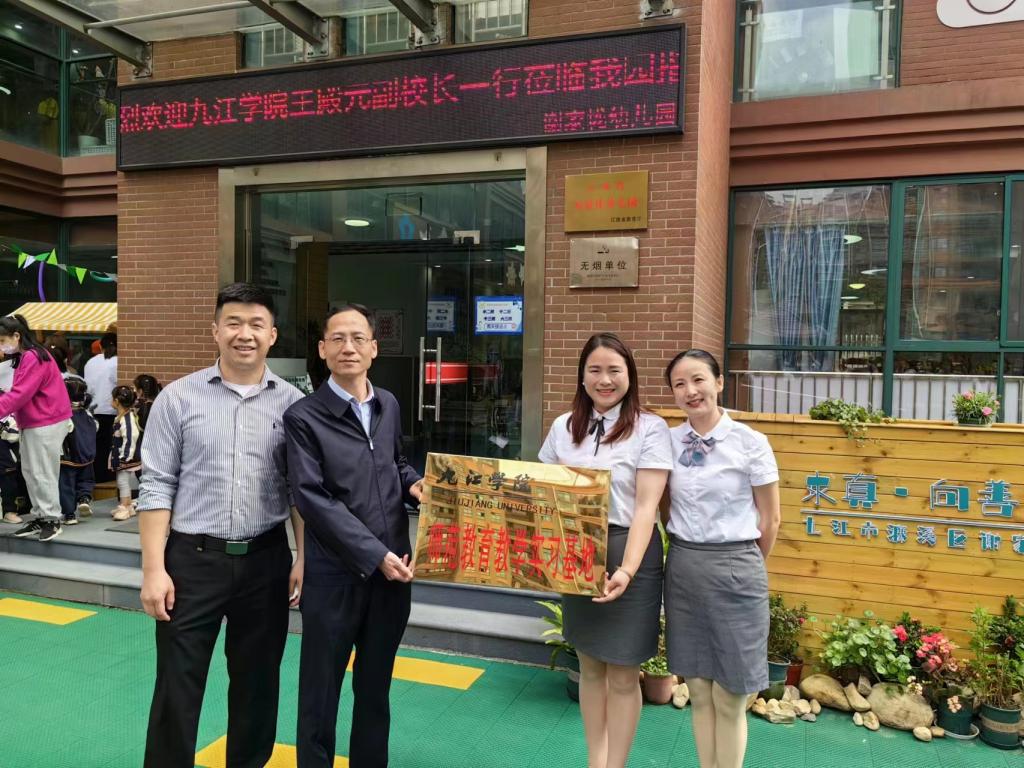 为加强学前教育专业建设,加深高校与地方幼儿园深度合作,强化学前教育专业学生的实践能力,创新人才培养模式,近日,九江学院与濂溪区第五幼儿园举行师范教育教学实习基地签约授牌仪式。副校长王殿元,教务处、教育学院、濂溪区第五幼儿园负责人、双方教师代表及学前教育专业2021级见习生参加了授牌仪式。