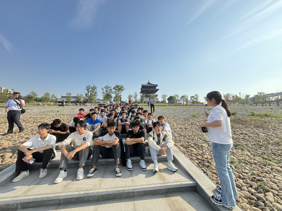 “浔阳江头夜送客,枫叶荻花秋瑟瑟”这些流传千古的名句名篇,彰显了中华传统文化的生态底蕴,映射了人与自然和谐共生的生态写照。走进琵琶亭,同学们朗诵了《琵琶行》,开启一段跨越千年时空的对话,历史场景随着同学们整齐划一的朗诵声一帧帧地活起来,同学们沉浸式体验浔阳江畔琵琶亭之美,透过传统文化感受人与自然和谐共生的美好愿景。