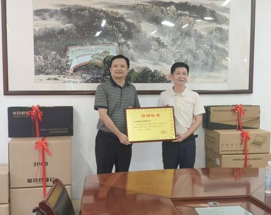 9月15日下午,一场捐赠活动在外国语学院香远楼219会议室开启。九江慧明电子科技有限公司向我校外国语学院捐赠了一批音响设备,这些物资承载着企业对学校教育事业发展的深切关怀与大力支持。