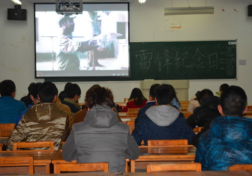 活动以团支书介绍雷锋的生平事迹中拉开序幕。活动伊始,团支书提出问题:“你认为雷锋精神是怎样的?”,并与同学们展开互动。活动中还放映纪念雷锋系列专题片《世纪雷锋》来加深大家对雷锋精神的理解,专题片中讲述了雷锋生前的感人事迹以及社会生活中一个个学习雷锋,以雷锋同志为榜样的好人好事,同学们听后深受感悟,纷纷对好人事迹致以最真诚和最热烈的掌声。最后,团支书表示:“我们要把学习雷锋、弘扬雷锋精神的活动长期开展下去,并把雷锋精神变成全面建设优良学风班级和服务大家的强大精神动力”。