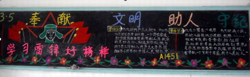 此次“雷锋日”板报的举办,让学生进一步认识了新时代下“雷锋精神”,营造了“学雷锋”的软环境,培养了广大同学的奉献精神。