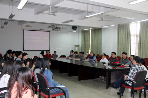 作为本科专业综合改革新举措,会计学院出台实施了卓越会计师班导师制。4月1日下午,卓越会计师班学生导师聘任仪式在立信楼会议室504如期举行,会计学院领导陈小林、吴铃、张国伟、罗维出席聘任仪式。会计学院副院长蔡报纯主持会议。