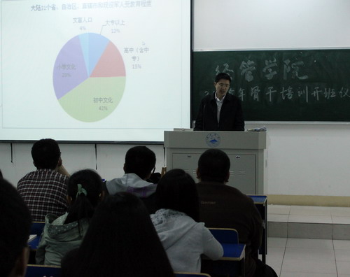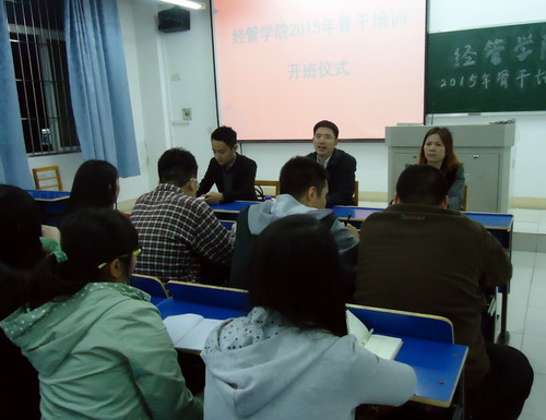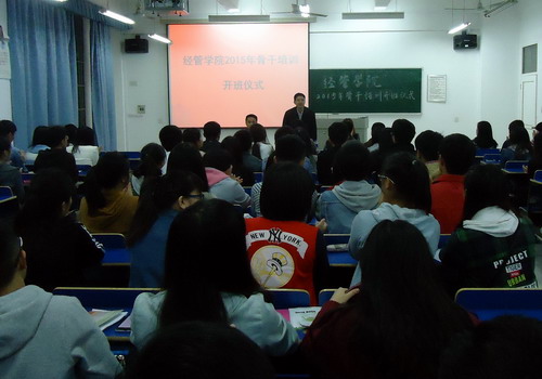 为响应团中央号召,配合校级“大骨干班”的工作开展,4月20日晚,由经管学院团委主办的2015年“新生代”大学生骨干培训班开班仪式在义丰楼501举行。经管学院党委书记花金龙、学生科负责老师朗少杰、团委负责老师李海等出席开班仪式。培训班82名学员参加了开班仪式,会议由李海老师主持。