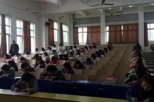 通过前期各个班级的准备、推荐和选拔工作, 4月23日,护理学院在华阶一教室举行第十届大学生护理技能理论知识考核,参赛人员主要是由每个班级选出的优秀学生代表,教务科、团委、实验中心的老师到场监考,王绍锋院长巡考,保证了比赛的公平与公正。