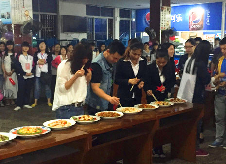 5月8日晚,浔东校区学生食堂人声鼎沸,由浔东学生会组织筹办的“美时美刻美客美食”浔东校区第九届美食节正在举行。此次活动得到了浔东饮食服务中心的大力支持。饮食服务中心副主任许谊源和浔东学生科科长、团工委书记宛华圣以及相关负责老师到场观看了活动。浔东校区各二级学院学生会积极组队参加了活动。