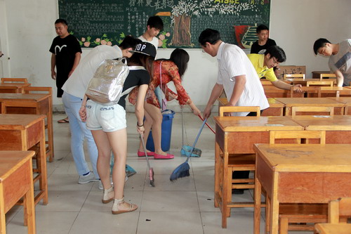 一年一度的2015届毕业季即将到来,很多毕业生陆续回校准备参加毕业论文答辩和毕业创作。5月19日中午,为了感恩回报学校的不倦教导,艺术学院毕业班学生党支部在学院党委书记王春生的倡议下,支部书记张新征老师具体布置和安排,开展为学院多媒体教室义务打扫卫生的活动。2011级全体学生党员、预备党员以及团学分会学生干部参加,2011级年级组长、学院学生科沈杨科长也和同学们一起参加卫生打扫。