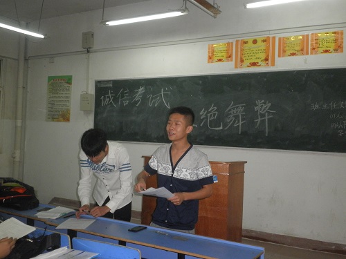 为营造一个良好的考试氛围,6月7日晚,机材学院在竞知楼各班教室召开以“诚信考试,杜绝舞弊”为主题的班会。