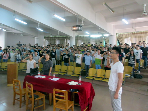 6月22日晚,土建学院在竞知楼三楼阶梯教室举行2015届毕业生党员大会暨新党员入党宣誓仪式。团委副书记谢彬,学生党支部支部书记李斌、吴芳及全体2015届毕业生党员以及全院新发展党员参会。
