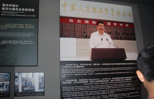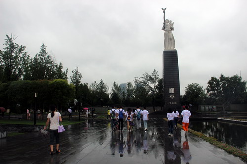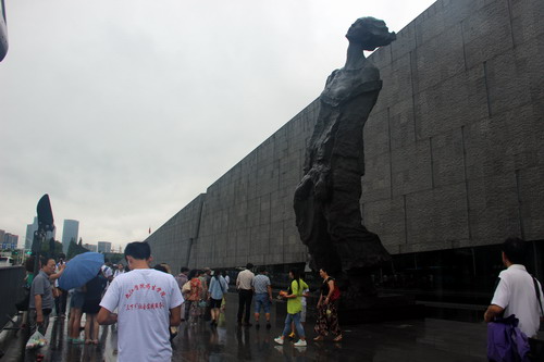 侵华日军南京大屠杀遇难同胞纪念馆座落在中国南京市江东门,这里曾是侵华日军集体屠杀遗址和遇难同胞丛葬地。为悼念遇难同胞,南京人民政府于1985年修建了纪念馆,1995年又进行了扩建。听完当地同学的介绍,大家便进入馆内,进入展厅后大家立刻被以生与死、悲与愤为主题的悲苍景象所震撼了。同学们看到了一些保留下来的东西,有70多年前被杀害的中国人民的骸骨,有一些已经锈迹斑斑的凶器,有短刀,刺刀和铁钉,更有那令人愤恨的“万人坑”,那里活埋了成千上万的中国人,这些都是日本侵略者对中国人民犯下不可饶恕罪过的铁一般的证据。接下来大家来到了祭场,在祭场前,同学们纷纷低头闭眼默哀,回顾了刚刚看到的惨绝人寰的历史,默默地悼念者那些灾难中的罹难者。紧接着学生代表为大家概述了那段惨绝人寰的历史,并告诉大家落后就要挨打,发展才能强大。之后他们带领大家进行了庄严宣誓,同学们纷纷表示,要牢记历史,维护真相,勿忘国耻,捍卫尊严,勇担重任,掘我中华!