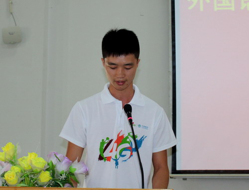 教师代表周志高老师从专业学习的角度对同学们提出了希望和建议。他希望广大新生在今后的学习中要多阅读经典,把外语学习和国学经典的学习相结合,使自己的学习更加充实,更加全面。