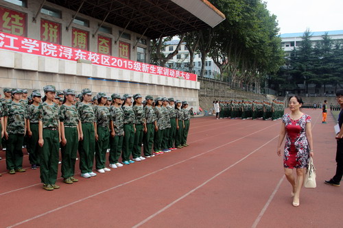 9月10日上午,药学与生命科学学院党委书记严姣姣在团委书记徐常龙、学生科科长甘金莲、副科长过七根和辅导员周海霞等人的陪同下来到浔东校区操场,看望正在军训的学院2015级新生和慰问正在紧承训海军教官、各班助理班主任。