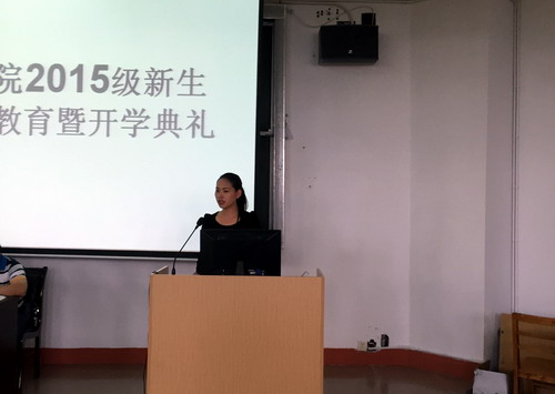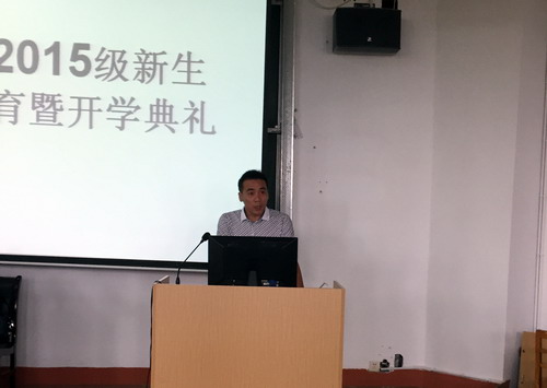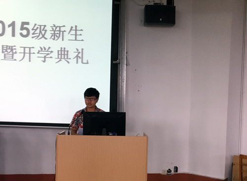 邹书记首先致欢迎词,他代表学院党政和全院师生欢迎2015级230名新生来到理学院,鼓励大家尽快适应新环境,找准定位和目标,规划好大学三、四年生活。周院长介绍了学校的基本情况和理学院师资队伍、专业建设、学生竞赛及获奖、社团活动等情况,周院长还结合自身经历告诉大家应“怎样读大学”:一要养成爱学习的习惯,要学会自学,要培养接受新知识的能力,要快乐的学习;二要多参加社团、社会实践活动锻炼自己、提高自己;三要学会宽容、忍耐、理解,同学之间要互帮互助,要珍惜同学之情。