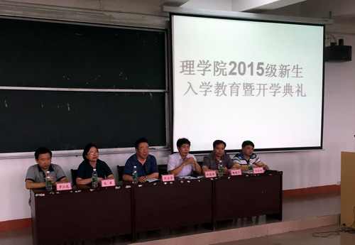 9月18日上午,理学院在竞知楼阶二召开2015级新生入学教育暨开学典礼,理学院院长周金贵、党委书记邹国辉,副院长马军、魏健宁,院长助理罗江龙、全体辅导员、新生班主任、新生助导及2015级新生参加了大会,会议学生科长周梓哲主持。