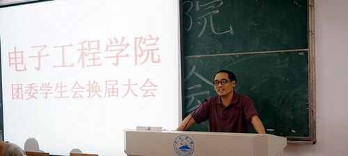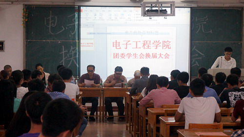 9月29日中午,竞知楼阶七教室,电子工程学院举行了第十四届团委学生会换届大会。院党委孙小明书记出席会议并讲话。全体辅导员及各班级学生代表参加了本次大会。