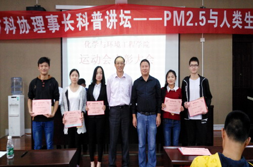 10月23日中午,化环学院在向学楼201举行了运动会表彰大会,学院党委书记刘新强,团委书记刘小风以及全体运动员出席本次大会。