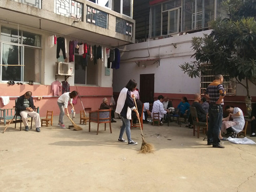 志愿者服务队员们步来到老年公寓,映入眼帘的便是那幽静的小院和在院子里晒着太阳笑着交谈的老人们,在和老人们打过招呼后,便按照原定计划开始打扫房间,擦窗户擦栏杆拖地,抓紧时间做好卫生工作。中午,当工作人员为老人们准备午饭时,志愿者们一起帮忙择菜做饭,陪老人们聊天,倾听他们以前的故事,欢声笑语不时传出,气氛其乐融融。