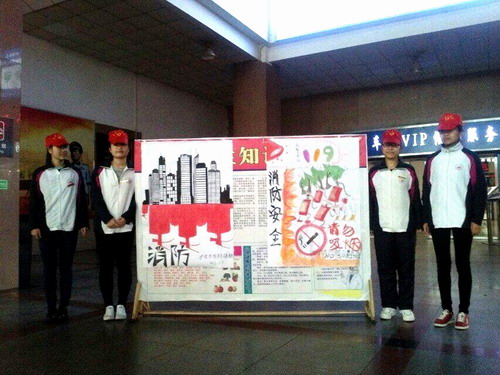 志愿者们赶往火车站后,在工作人员的协助下,志愿者们分成三小组,各司其职。第一小组负责消防知识宣传任务,志愿者们支起消防安全宣传展板,并耐心的给来往的旅客进行消防知识的宣传与讲解,希望以此来提高旅客们的防火防范意识;第二小组则耐心为旅客们提供场地引导及帮助;第三小组的志愿者在自助售票处做志愿服务专员,不厌其烦地为乘客讲解取票步骤以及特殊情况的处理方法。志愿者们忙碌的身影穿梭在大厅的各个角落,成为一道亮丽的风景线,受到了旅客的好评。