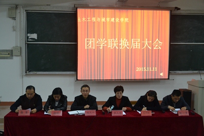 11月11日下午,土建学院第七届团学联换届大会在竞知楼阶三教室顺利召开。学院党委书记郭玉荣、党委副书记项忠平出席会议,团委学生科负责人、辅导员老师及新老团学联学生干部、部分部门干事到会。会议由学生科科长郭军主持。