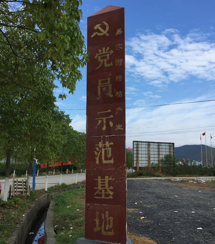 易家河村村委刘建华副书记介绍说,易家河村隶属于江西九江市永修县柘林镇,背依云居山,面临庐山西海,山上植被葱郁,地下温泉蒸腾。当地人民善谋实干,利用独特的地理环境,优质的空气、水源和阳光成功引入柑桔产业,并通过山地开发,使全村柑桔种植面积达4600余亩,年产量2000多万斤,产品远销北京、南京、哈尔滨、香港、马来西亚等地,年销售收入1000多万元,成为远近闻名的小康村。同时,这里还是共青团生态文明示范村和柑橘产业党员示范基地。