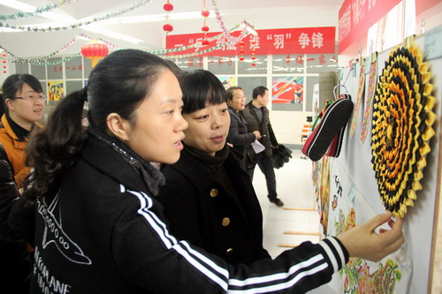 走进教工活动中心,顿觉眼前一亮:桌子上,墙上是近40件创意新颖、寓意深刻的手工艺作品。惟妙惟肖的剪纸贴画、流光溢彩的仿水晶艺术品、色彩亮丽的十字绣、废旧利用的纸雕、制作精巧的手工编织……每一件展品都展示了我院女职工的“妙思巧手”,给人们留下了深刻的印象。