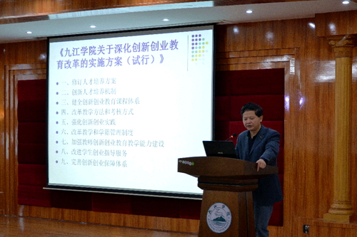 张书记带领大家共同学习了《国务院办公厅关于深化高等学校创新创业教育改革的实施意见》、《江西省人民政府办公厅关于深化高等学校创新创业教育改革的实施意见》、《九江学院关于深化创新创业教育改革的实施方案(试行)》等重要文件以及李克强总理对首届中国“互联网+”大学生创新创业大赛做出的重要批示,还传达了甘筱青校长在学校“互联网+”创新创业大赛颁奖暨创新创业教育工作会上的讲话。