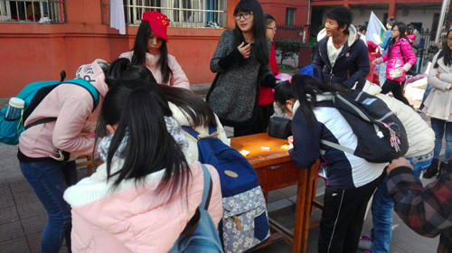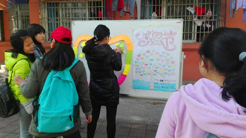 为了让广大同学们懂得并学会感恩,11月28日中午,基础医学院青年志愿者服务队于浔东校区欧风园开展感恩活动。