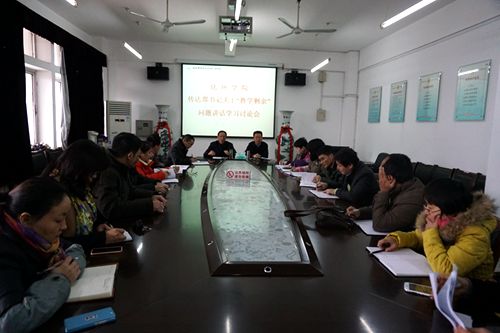刘新强书记首先就郑书记在“三严三实”研讨会上的讲话精神与大家一起进行了学习,他指出,大家要切实解放思想,统一思想,厘清教学和科研的关系,加大人才引进力度,真正实现“教学剩余”。刘书记要求学院全体教职员工高度重视,通过网络平台发布大家的讨论成果,周三下午的教研室活动要将会议精神传达至每一位教职员工,并进行充分讨论。
