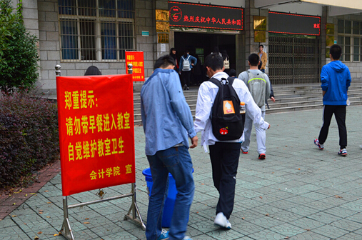 前期的宣传动员工作广泛且行之有效。会计学院通过召开动员会、利用新媒体以及张贴“十准则”宣传牌等方式在学生干部及各班进行广泛的宣传动员,时刻提醒同学们树立文明意识,在活动初期已经做到学生培养好习惯意识的强化。