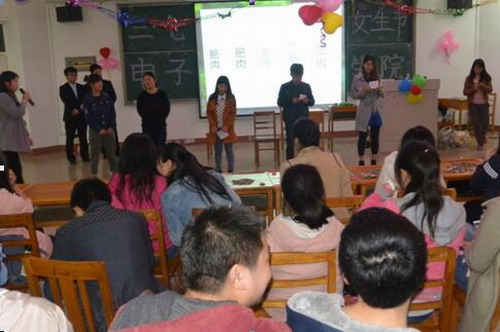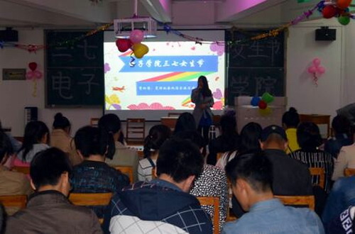 为丰富电子学院女生的校园文化生活,增强学生的凝聚力,增进同学之间的友谊,3月7日晚,以热心帮助、关爱女生为主题,电子学院女工部带领相关部门人员在竞知楼阶七教室举办“三七女生节”文艺晚会,电子学院的全体学生积极地参与到此次活动中来,观看表演并热情互动。